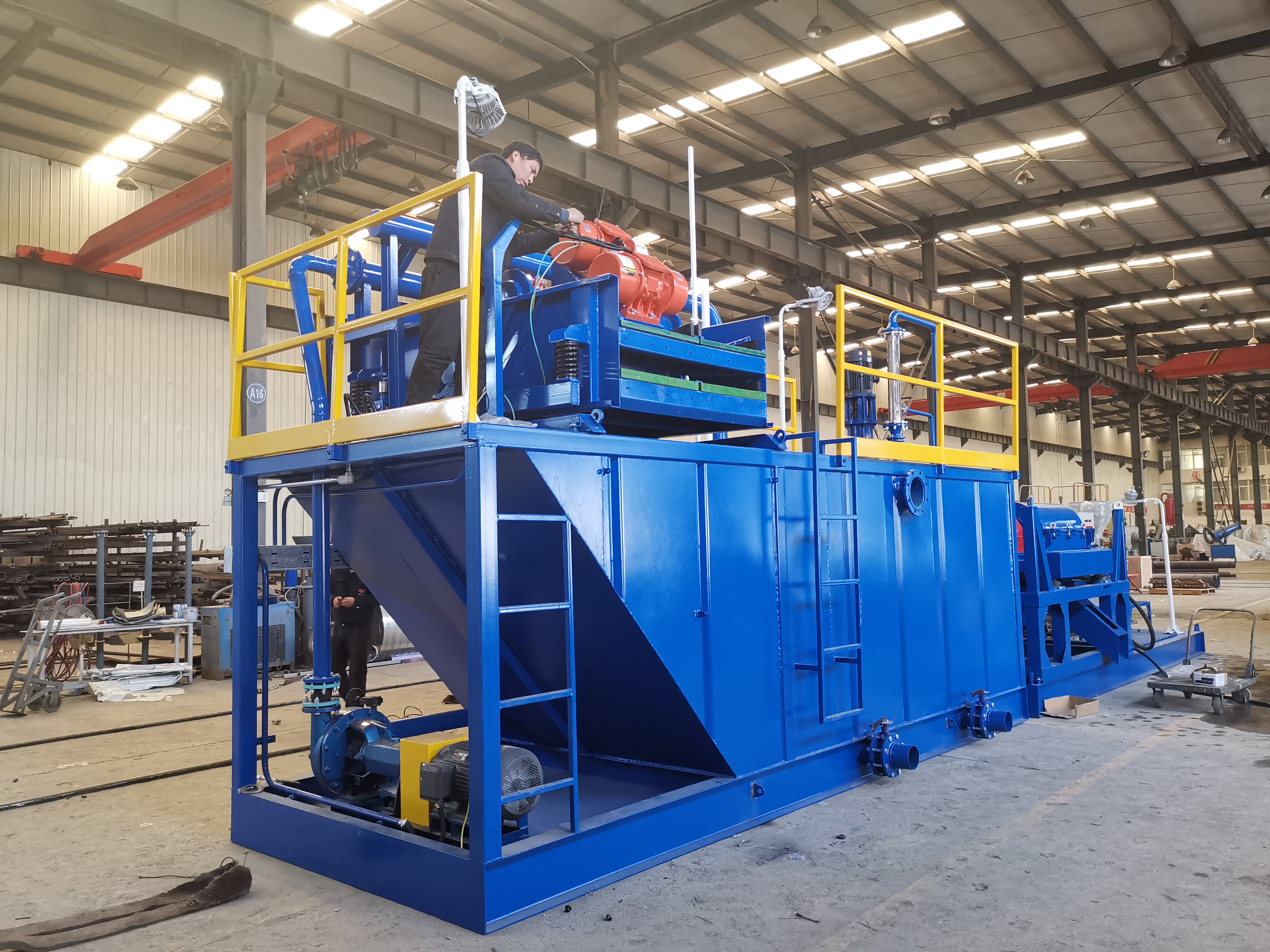 就行業(yè)目前的現狀來看,泥水處理系統(tǒng)的工作流程如下:先由預篩分器的兩層粗篩震動對泥漿進行篩選,分離其中粒徑在3毫米以上的顆粒物;再由一級儲漿泵槽對余下的泥漿進行篩分,利用兩套一級旋流器并使用兩臺渣漿泵進行輔助進料,旋流除砂器對泥漿進行分選,并由下端的沙嘴將粒徑較小的泥砂排出,落入到下層的細篩中,一級中儲箱用于分篩其余泥漿,可直接進行一、二級儲漿槽也可經由排漿管排出,流入二級旋流器除砂器中,由其進漿泵泵入二級旋流除砂器組中,最終將流口流出的泥漿由上層的除泥篩細篩進行篩分,經過此過程,一、二級旋流器底的泥漿經過篩分和脫水后,可以在一定程度上分離渣料和漿液,篩分出的漿液由一級儲漿槽池進行存儲。