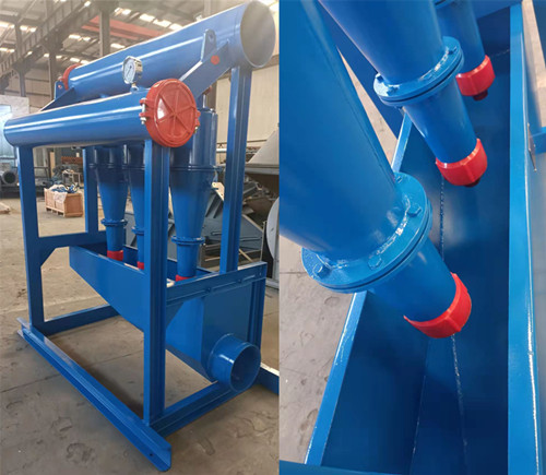 MD系列除砂器為定制化產(chǎn)品,本次我們根據(jù)客戶了需求,定制了3個旋流器,在河水除砂過程中能夠將物料中顆粒直徑為40-100μm的固相顆粒分離出來,將泥沙完成初步篩分和清潔,再去進行下一步處理,更好的滿足客戶現(xiàn)場作業(yè)場地小,物料含沙量高,處理量要求較大。該款產(chǎn)品可以根據(jù)客戶現(xiàn)場物料的屬性定制旋流器的材質,定制材質有:高鉻鑄鐵、聚氨酯、耐磨橡膠、耐磨陶瓷、不銹鋼等。